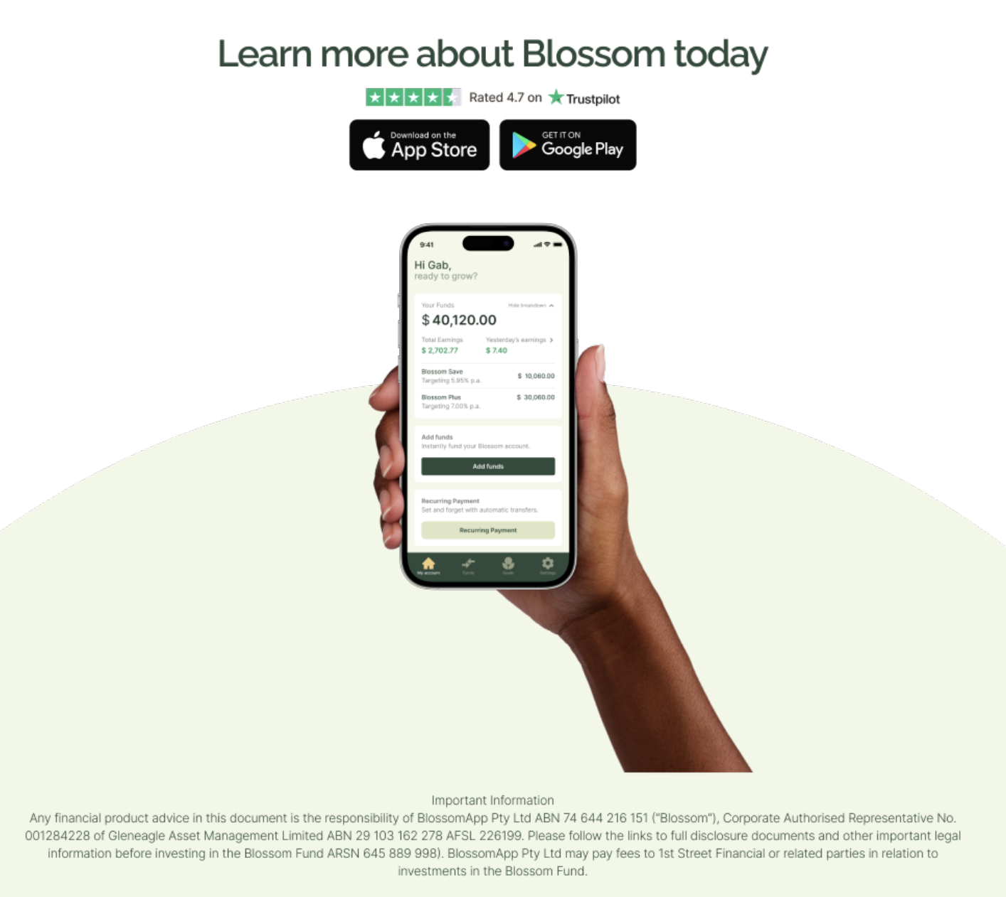 We love helping people get home loans, and our friends at The Blossom App love helping people save. They make it pretty rewarding too, when you can collect up to 7% p.a. in targeted returns, posted daily.