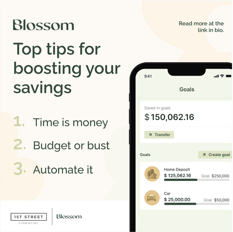 Whether it’s a deposit for a new home, a new car or a trip to New York – the team at Blossom are experts in making saving easy, and faster. Here are their 3 top tips on boosting those savings: